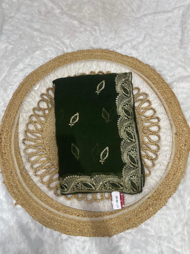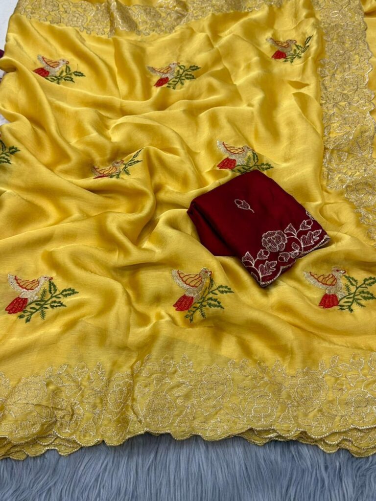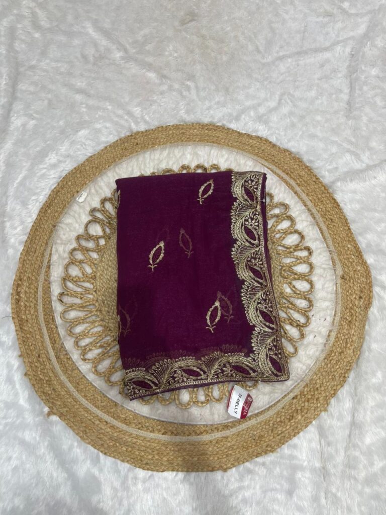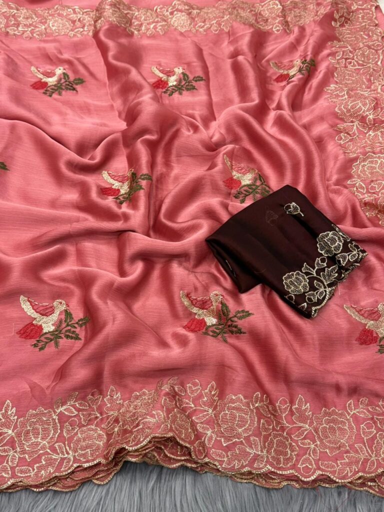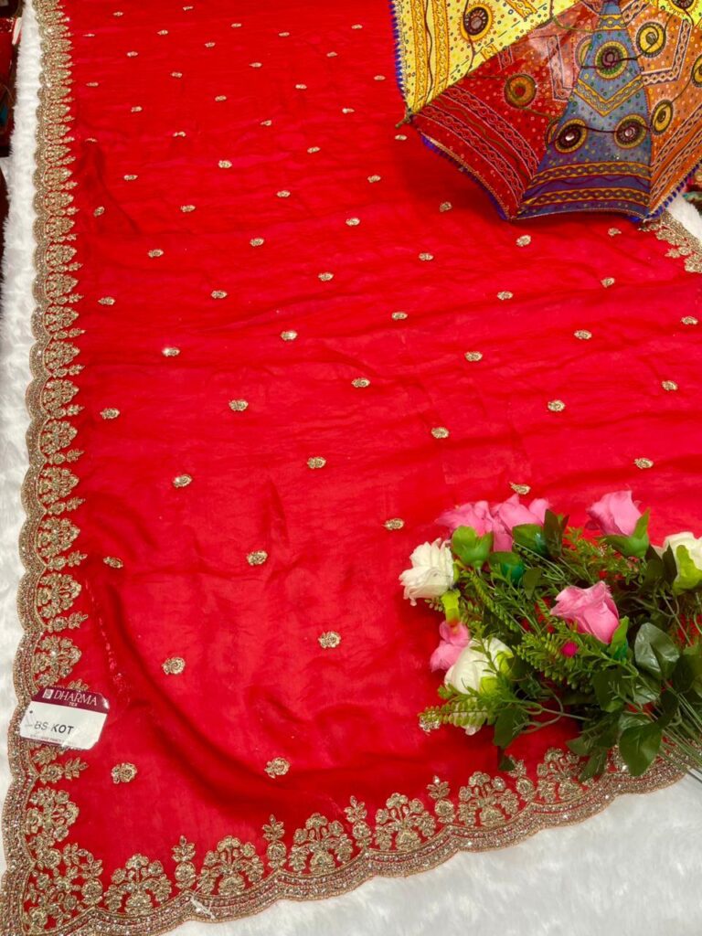Embroidered Georgette Saree with Zari Scalloped Border