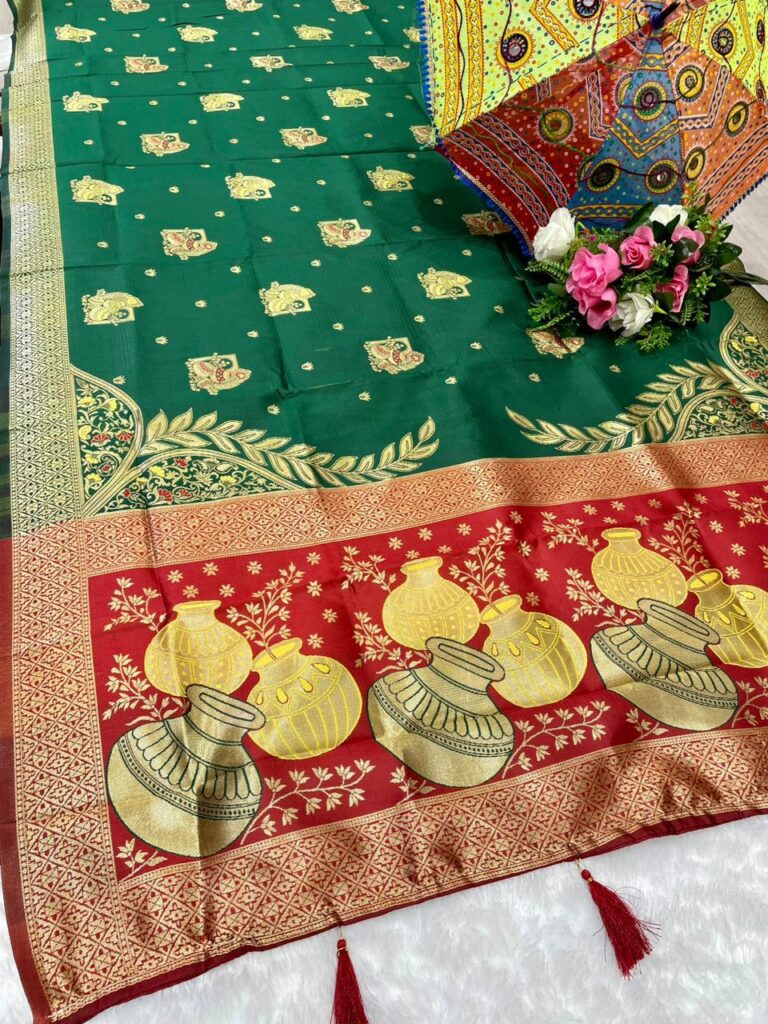 Emerald Green Banarasi Soft Silk Saree with Gold Zari Work