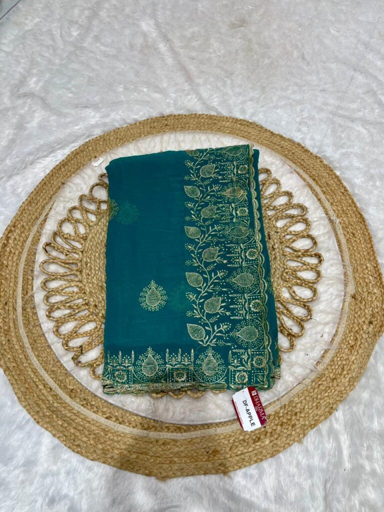 Georgette Party Wear Saree with Silver Zari Floral Embroidery